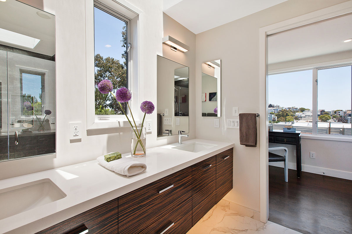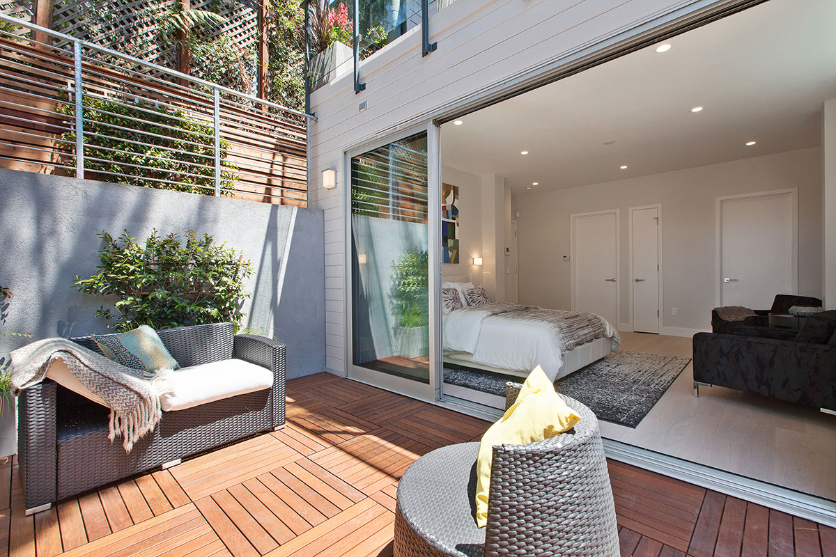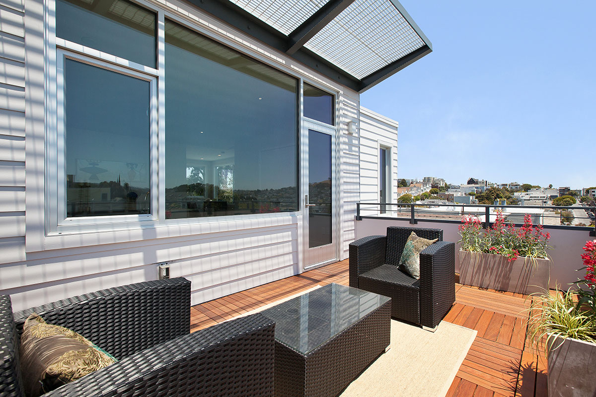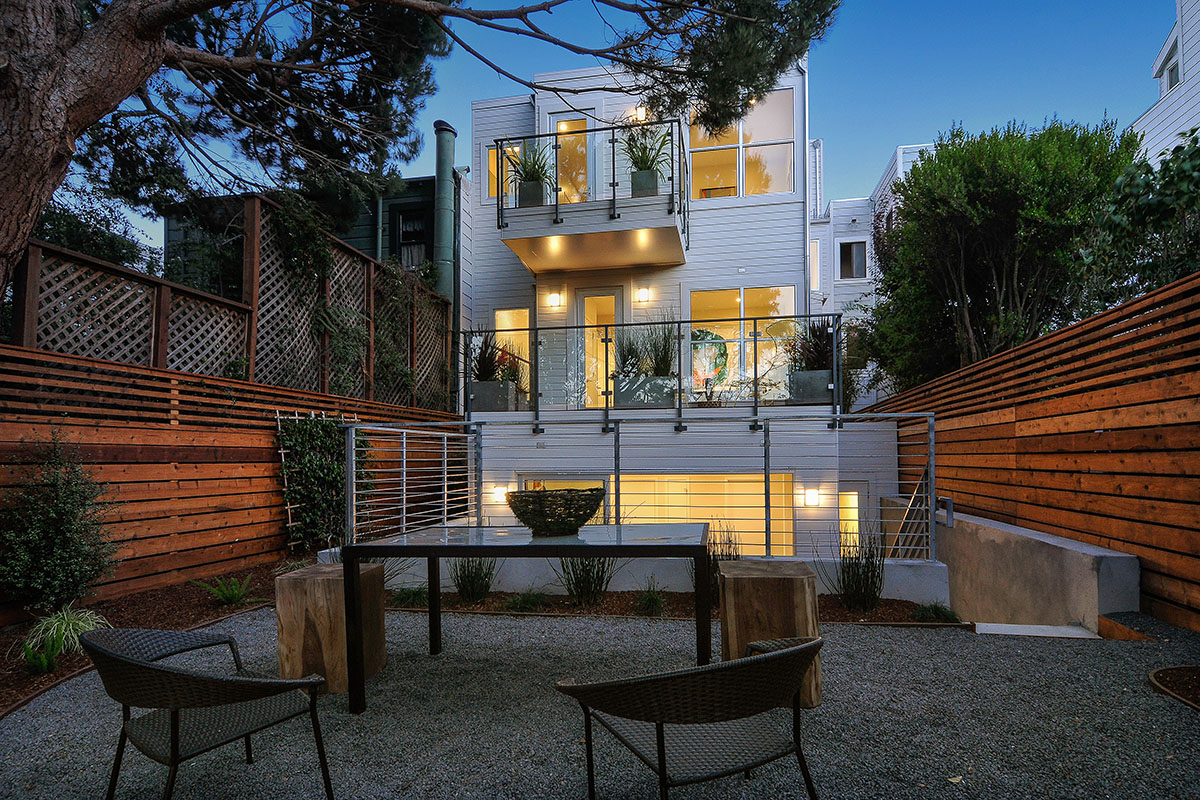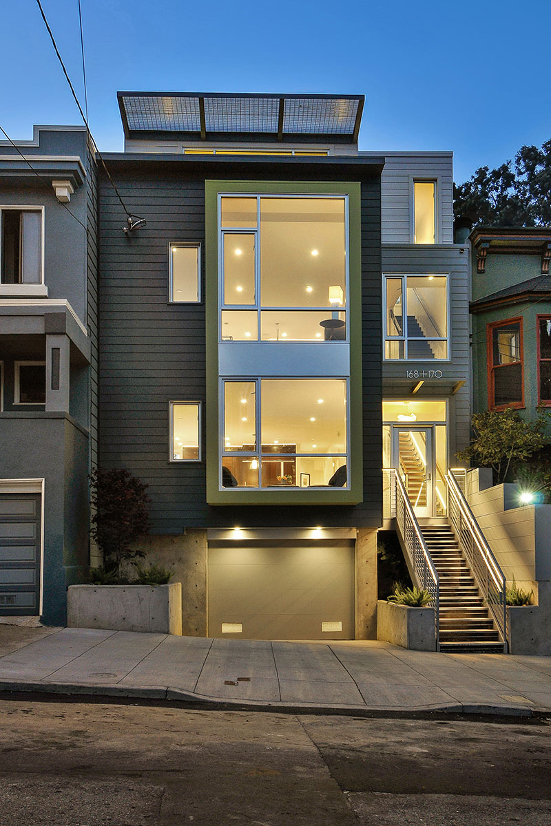 Located on a busy thoroughfare in San Francisco’s Noe Valley neighborhood, this urban infill project provides two modern townhouses. The two units are mirrored horizontally, the lower unit with a master bedroom to open to a rear garden with a view and the top unit with a roof deck to create a priceless sunny view of San Francisco. The mix of traditional façade materials, metal stairs and canopies provide for a modernist interpretation of a row house.