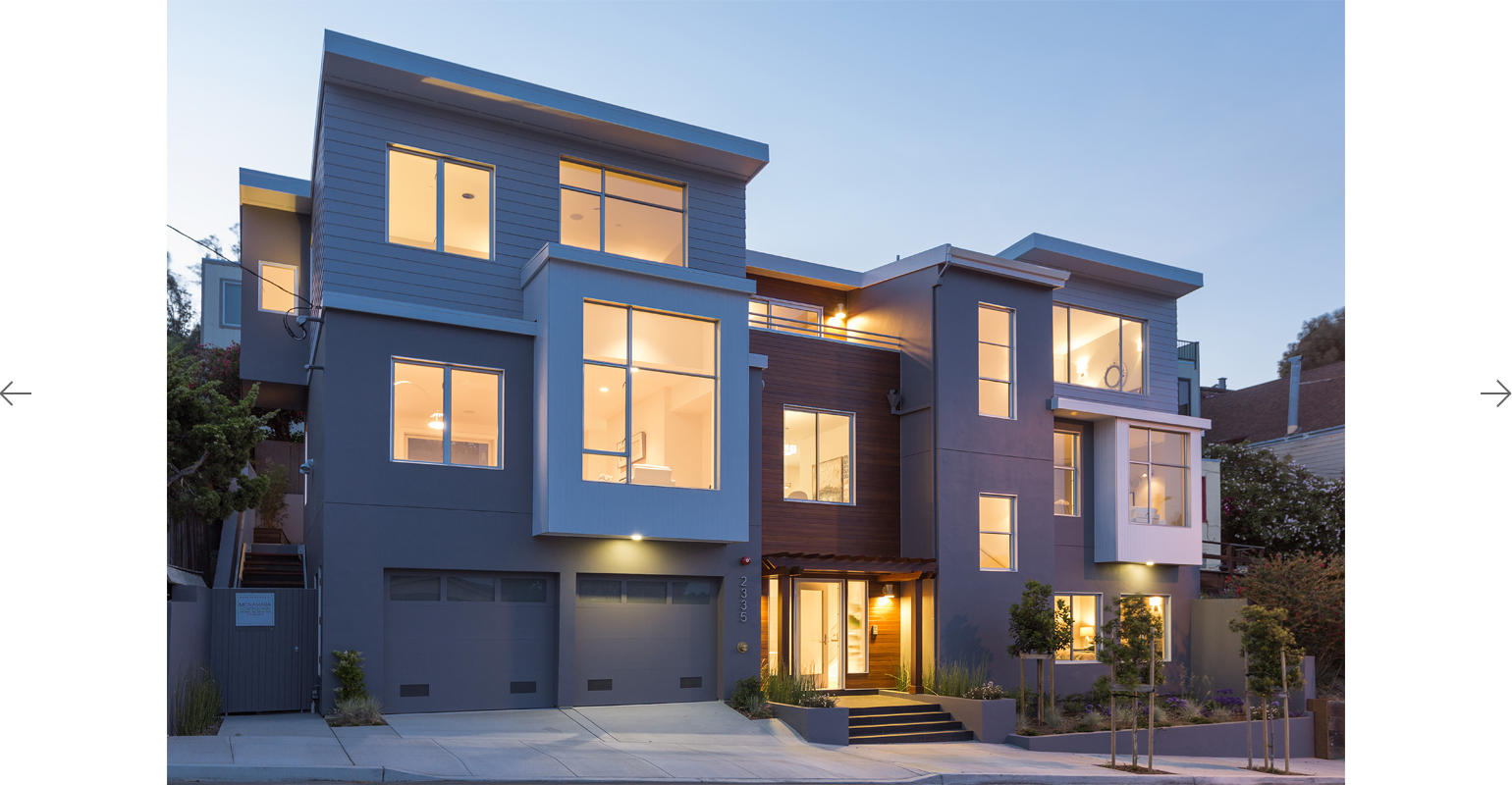 This three story single family home is located on the hills of San Francisco in the Glen Park neighborhood on an unusually wide, but shallow, upsloping lot, with panoramic views of San Francisco to the East and the San Bruno Mountains in the distance to the South. Fully embraces the views, the living areas are located on the 2nd floor, with street access to the stepped garden and southern sun pouring in through the large windows on the front façade. The entrance is marked with naturally sealed wood siding and a wood trellis, which allows for the planting of vines, which will create further articulation for the front façade.