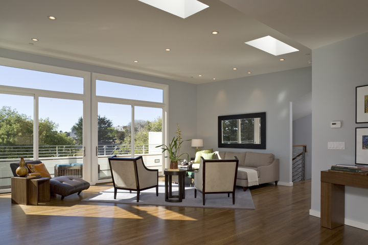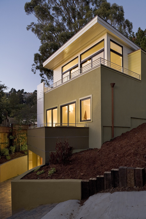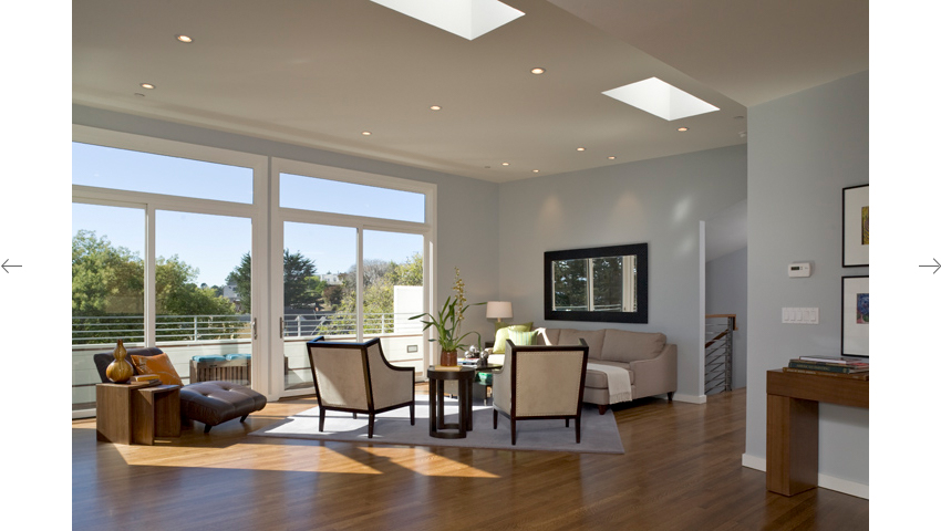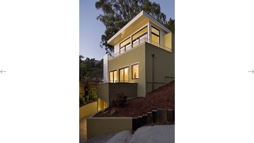 Located in San Francisco’s Glen Park neighborhood, on a lot that neighbors for years contested any development, we were able to negotiate agreeable terms, leading to the construction of a distinctive single family home. The lot is tucked in off a private lane and is three stories that takes advantage of the sloped site, stepping up the slope. The main living spaces are on the third floor with a sloping roof that opens dramatically towards the southern sun and magnificent views.
